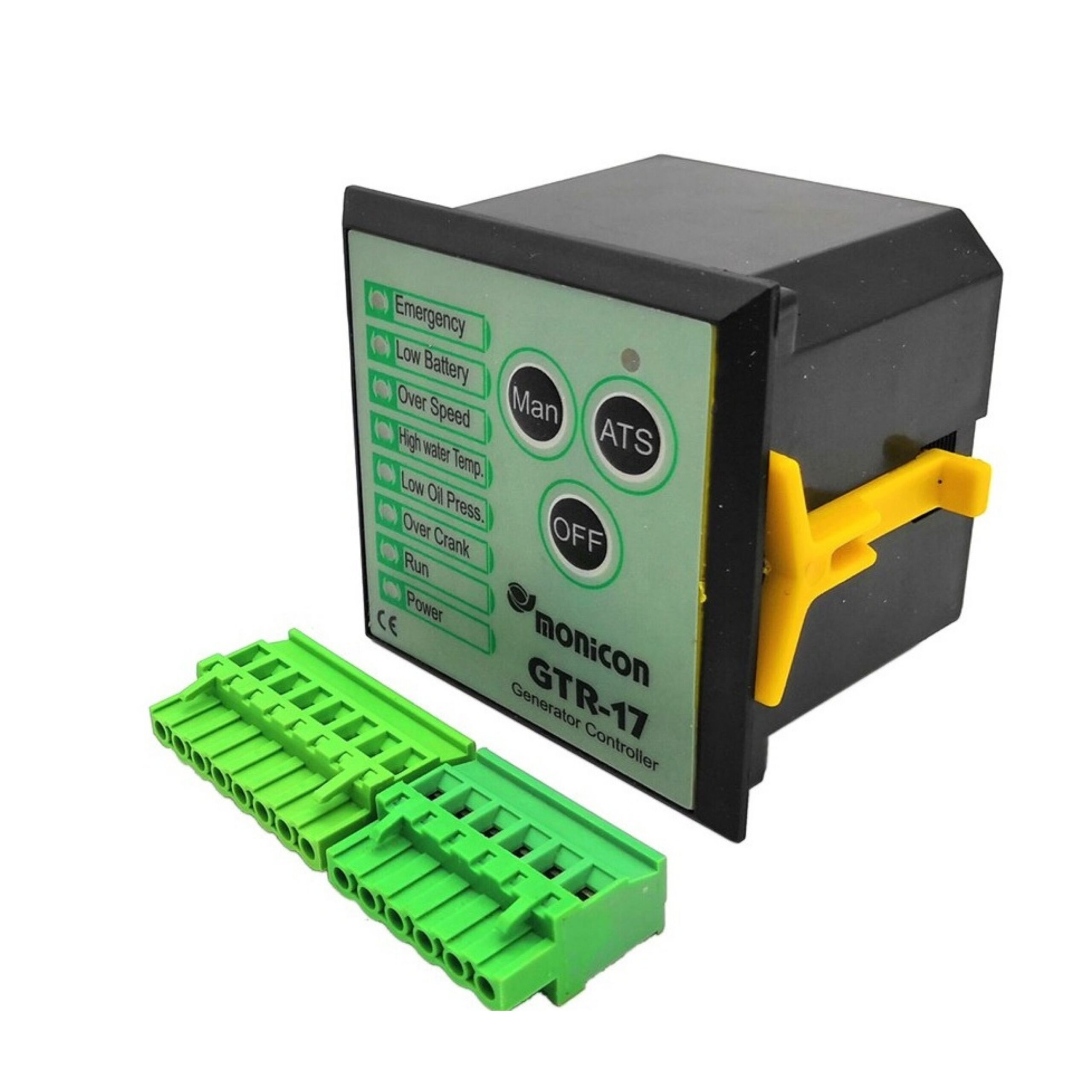 El módulo de remplazo GTR17, es un controlador de generador de bajo costo equipado con funciones de inicio/parada automática, protecciones, alarma y anuncio, etc. El monitoreo y las protecciones incluyen: funcionamiento, exceso de velocidad, alta temperatura del agua, baja presión de aceite, sobre manivela, parada de emergencia y batería baja.